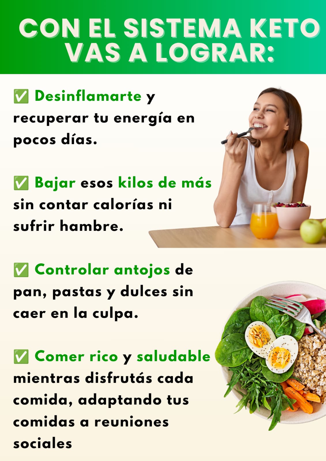 Con el plan controlo mejor mis antojos y tengo más energía.